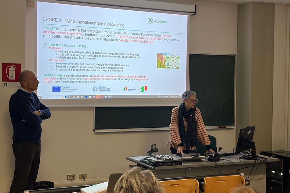 Sul fronte delle scienze agronomiche ed alimentari la professoressa Giorgia Spigno e il professor Stefano Amaducci hanno presentato le attività in corso sul fronte dei materiali e dispositivi al servizio della filiera agroalimentare, con particolare riferimento alla sensoristica per effettuare monitoraggio in-vivo delle colture anche in campi agri voltaici e alla realizzazione di materiali ecosostenibili per il packaging alimentare tramite lo sviluppo di materiali biobased con funzionalità aggiuntive e lo studio del fine vita dei materiali. Questo gruppo di ricerca ha già ricevuto l’interesse di circa venti imprese per le attività svolte.