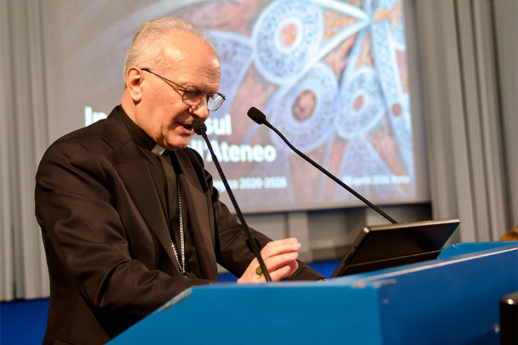 «L’iniziativa promossa dalla Rettrice sin dall’inizio del suo mandato, e condivisa convintamente dai suoi collaboratori e dai docenti, risponde ad un disegno originale e innovativo nello scenario delle istituzioni accademiche attuali – ha detto Mons. Vincenzo Zani nel suo intervento -. In particolare esso ha il grande pregio di marcare l’identità, la progettualità nonché la missione dell’Ateneo dei cattolici in Italia e di collocarlo nell’orizzonte internazionale», attraverso tre elementi fondamentali. «Il primo – ha continuato - è il contesto culturale e geo-politico che fa da sfondo al Piano strategico. La scelta voluta dalla Rettrice di traghettare l’Ateneo verso il futuro, dando corpo all’idea di migliore università per il mondo, non può non rimandare alle radici stesse, al DNA di questa istituzione. E mi piace sottolineare che mentre si avvia l’attuazione del Piano strategico la Rettrice Elena Beccalli è stata eletta membro della Federazione Internazionale delle Università Cattoliche (la FIUC), voluta da Gemelli, nonché presidente della sua sezione europea, cioè la FUCE. Questo ruolo della nostra Rettrice aiuterà senza dubbio ad incentivare ulteriormente la dimensione internazionale, la ricerca scientifica e la qualità accademica del nostro Ateneo, come è ben sottolineato nei pilastri del Piano strategico».