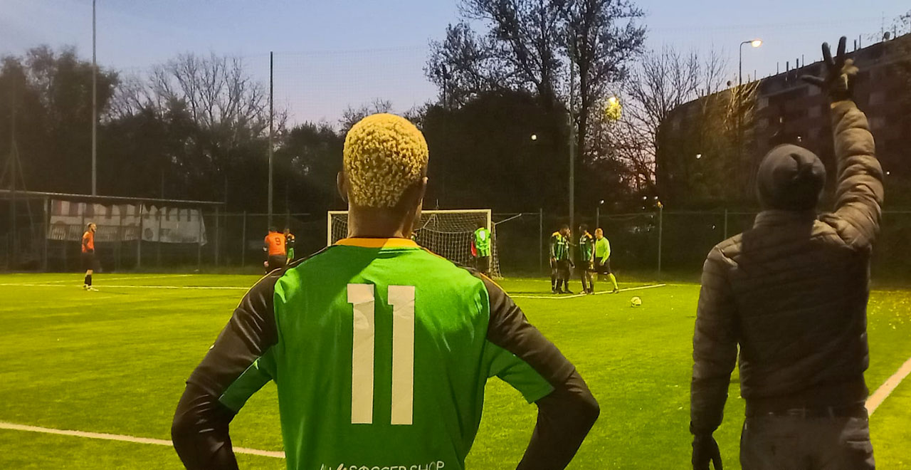 Ora il sole tramonta dietro i palazzoni popolari che stanno attorno al centro sportivo. Il freddo comincia a farsi sentire. L’allenatore Fadi Albitar, siriano ex giocatore professionista, arrivato in Italia per laurearsi all’Università Cattolica in Scienze motorie (una storia che abbiamo già raccontato) fa schierare i convocati a bordo campo. Si corre avanti e indietro. Prima con le ginocchia al petto, poi sforbiciando su un lato e poi sull’altro. Qualche passaggio con la palla. Si fa la conta. Purtroppo, il portiere non si è ancora fatto vedere. Ma bisogna iniziare. Pazienza, Danilo Moussa, che di solito gioca a centro campo, si mette tra i pali.