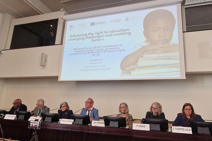 Nell’ambito del Forum Sociale 2025 del Consiglio dei Diritti Umani delle Nazioni Unite, tenuto lo scorso 30 ottobre a Ginevra e quest’anno dedicato al contributo dell’educazione al rispetto, alla promozione, alla protezione e alla realizzazione di tutti i diritti umani per tutti, la Cattedra UNESCO “Education for Human Development and Solidarity among Peoples” dell’Università Cattolica ha preso parte alla tavola rotonda Enhancing the Right to Education: Emerging Challenges and Enabling Factors.